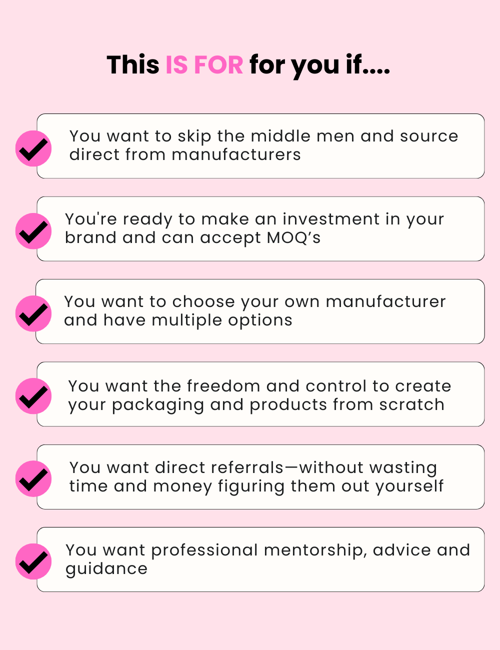 Yes. You’ll get directly introduced to my trusted manufacturer. I’ve personally met, visited their factory, and worked with for many years. PLUS two tried & tested back up contacts absolutely free. This is not a random vendor list.